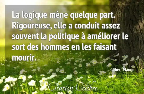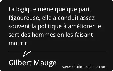 La logique mène quelque part. Rigoureuse, elle a conduit assez souvent la politique à améliorer le sort des hommes en les faisant mourir.