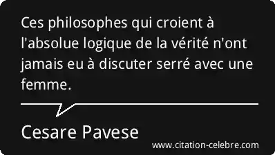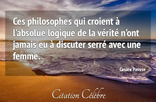 Ces philosophes qui croient à l'absolue logique de la vérité n'ont jamais eu à discuter serré avec une femme.