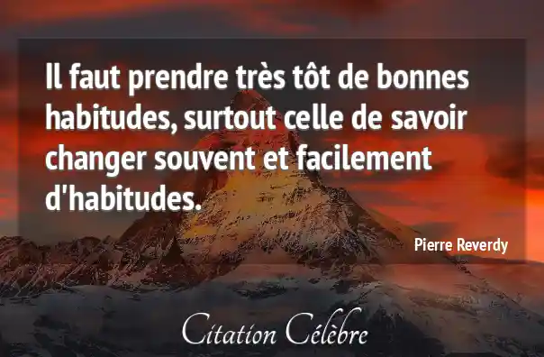 Il faut prendre très tôt de bonnes habitudes, surtout celle de savoir changer souvent et facilement d'habitudes.