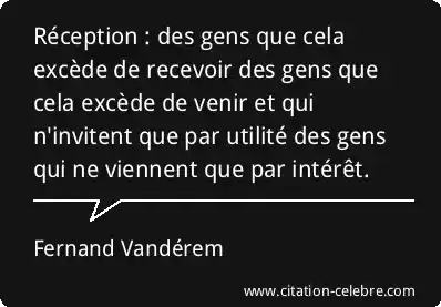 Réception : des gens que cela excède de recevoir des gens que cela excède de venir et qui n'invitent que par utilité des gens qui ne viennent que par intérêt.