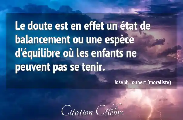 Le doute est en effet un état de balancement ou une espèce d'équilibre où les enfants ne peuvent pas se tenir.