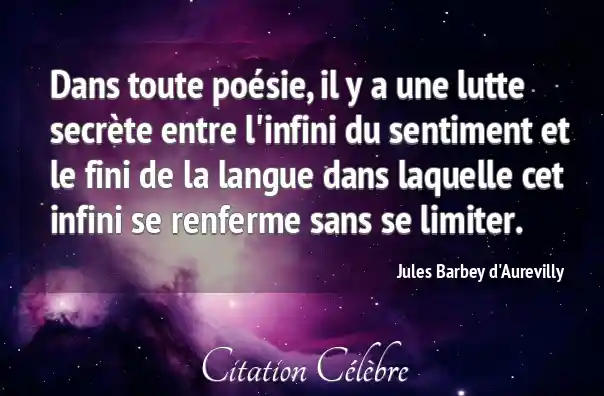 Dans toute poésie, il y a une lutte secrète entre l'infini du sentiment et le fini de la langue dans laquelle cet infini se renferme sans se limiter.