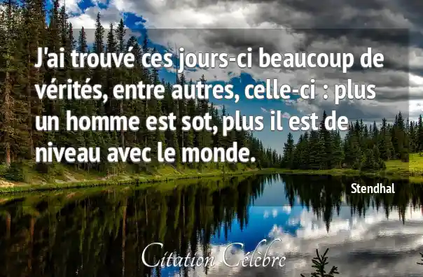 J'ai trouvé ces jours-ci beaucoup de vérités, entre autres, celle-ci : plus un homme est sot, plus il est de niveau avec le monde.
