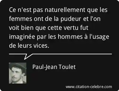 Ce n'est pas naturellement que les femmes ont de la pudeur et l'on voit bien que cette vertu fut imaginée par les hommes à l'usage de leurs vices.