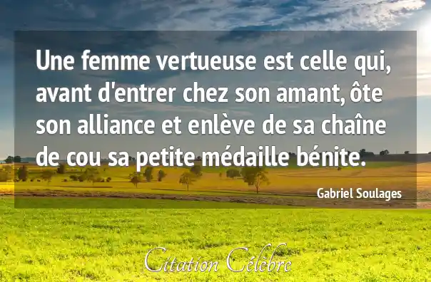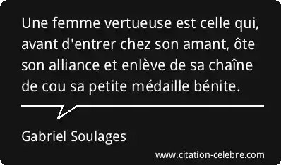 Une femme vertueuse est celle qui, avant d'entrer chez son amant, ôte son alliance et enlève de sa chaîne de cou sa petite médaille bénite.