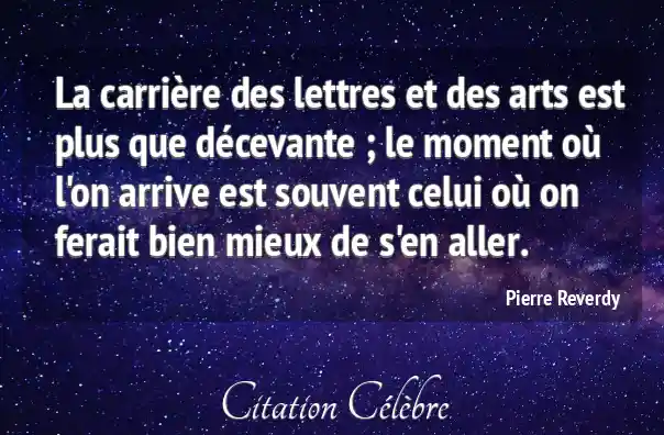 La carrière des lettres et des arts est plus que décevante ; le moment où l'on arrive est souvent celui où on ferait bien mieux de s'en aller.