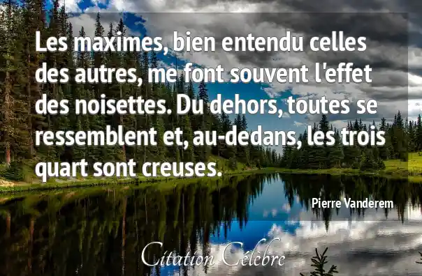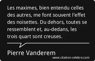 Les maximes, bien entendu celles des autres, me font souvent l'effet des noisettes. Du dehors, toutes se ressemblent et, au-dedans, les trois quart sont creuses.