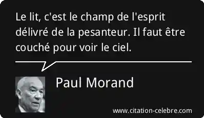 Le lit, c'est le champ de l'esprit délivré de la pesanteur. Il faut être couché pour voir le ciel.