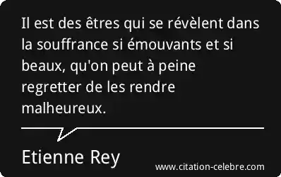 Il est des êtres qui se révèlent dans la souffrance si émouvants et si beaux, qu'on peut à peine regretter de les rendre malheureux.