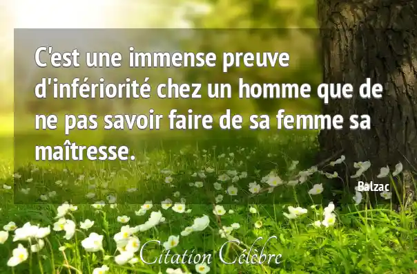 C'est une immense preuve d'infériorité chez un homme que de ne pas savoir faire de sa femme sa maîtresse.
