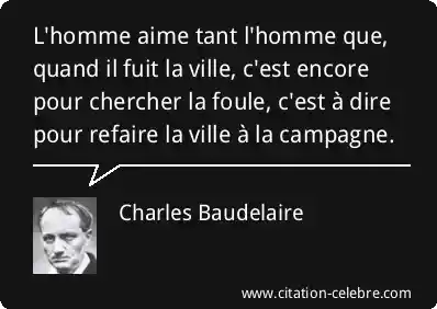 L'homme aime tant l'homme que, quand il fuit la ville, c'est encore pour chercher la foule, c'est à dire pour refaire la ville à la campagne.
