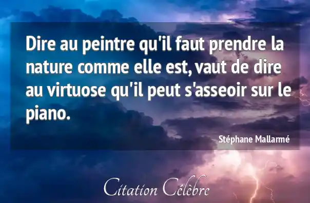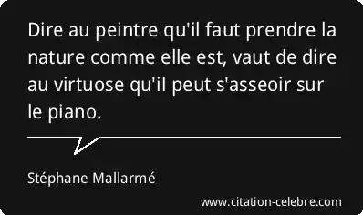 Dire au peintre qu'il faut prendre la nature comme elle est, vaut de dire au virtuose qu'il peut s'asseoir sur le piano.