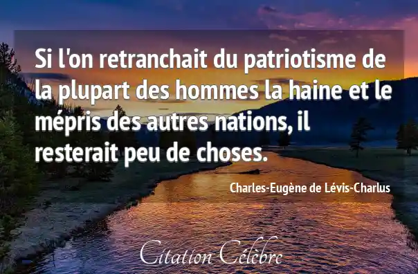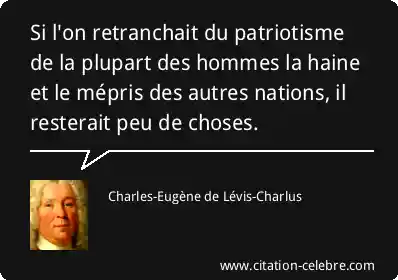Si l'on retranchait du patriotisme de la plupart des hommes la haine et le mépris des autres nations, il resterait peu de choses.