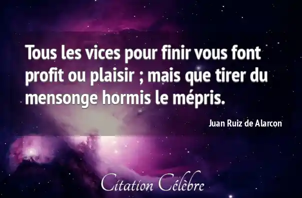 Citation Juan Ruiz de Alarcon mensonge : Tous les vices pour finir vous font profit ou plaisir...