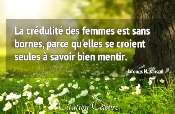 La crédulité des femmes est sans bornes, parce qu'elles se croient seules à savoir bien mentir.