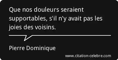 Que nos douleurs seraient supportables, s'il n'y avait pas les joies des voisins.