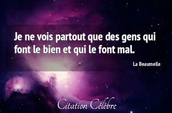 Je ne vois partout que des gens qui font le bien et qui le font mal.