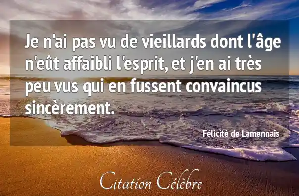 Je n'ai pas vu de vieillards dont l'âge n'eût affaibli l'esprit, et j'en ai très peu vus qui en fussent convaincus sincèrement.