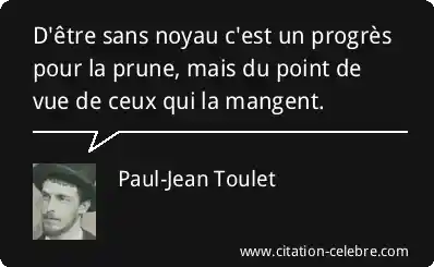 D'être sans noyau c'est un progrès pour la prune, mais du point de vue de ceux qui la mangent.