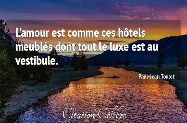 L'amour est comme ces hôtels meublés dont tout le luxe est au vestibule.