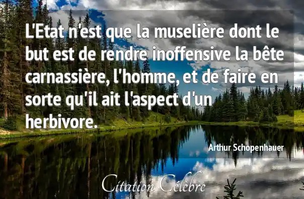 L'Etat n'est que la muselière dont le but est de rendre inoffensive la bête carnassière, l'homme, et de faire en sorte qu'il ait l'aspect d'un herbivore.