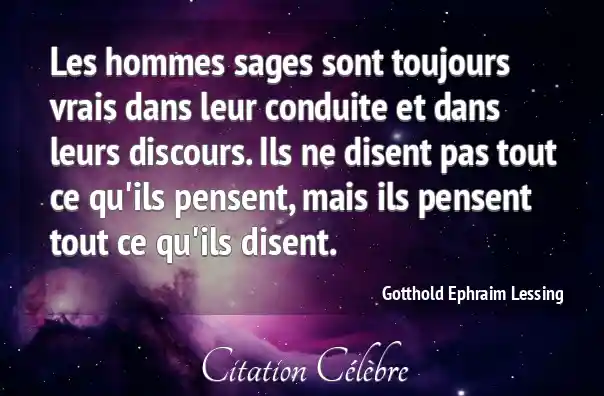 Les hommes sages sont toujours vrais dans leur conduite et dans leurs discours. Ils ne disent pas tout ce qu'ils pensent, mais ils pensent tout ce qu'ils disent.