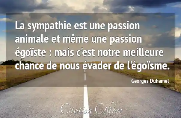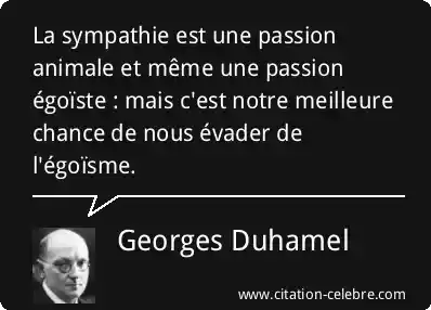 La sympathie est une passion animale et même une passion égoïste : mais c'est notre meilleure chance de nous évader de l'égoïsme.