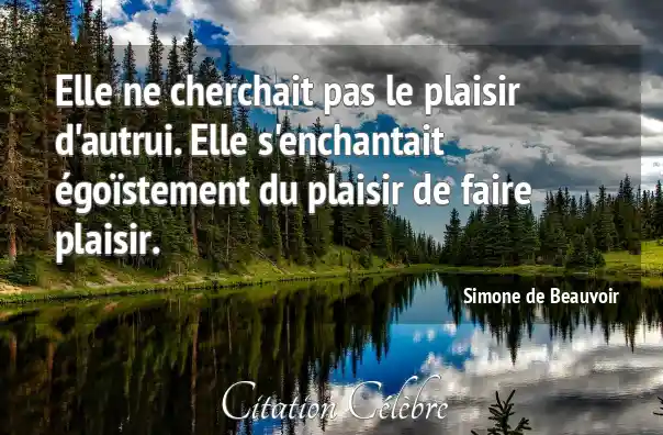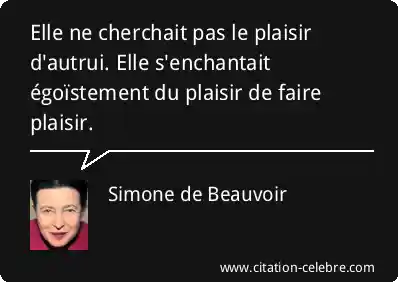 Elle ne cherchait pas le plaisir d'autrui. Elle s'enchantait égoïstement du plaisir de faire plaisir.