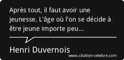 Après tout, il faut avoir une jeunesse. L'âge où l'on se décide à être jeune importe peu...
