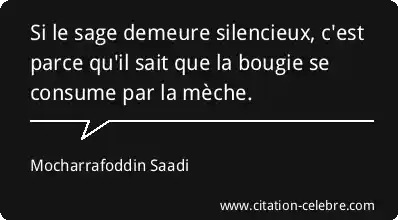 Si le sage demeure silencieux, c'est parce qu'il sait que la bougie se consume par la mèche.