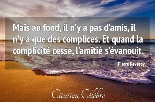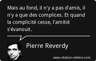 Mais au fond, il n'y a pas d'amis, il n'y a que des complices. Et quand la complicité cesse, l'amitié s'évanouit.