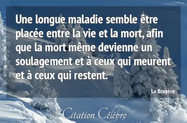 Une longue maladie semble être placée entre la vie et la mort, afin que la mort même devienne un soulagement et à ceux qui meurent et à ceux qui restent.
