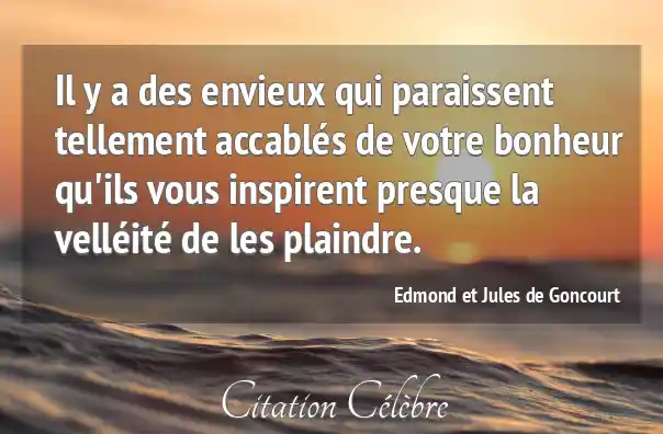 Il y a des envieux qui paraissent tellement accablés de votre bonheur qu'ils vous inspirent presque la velléité de les plaindre.