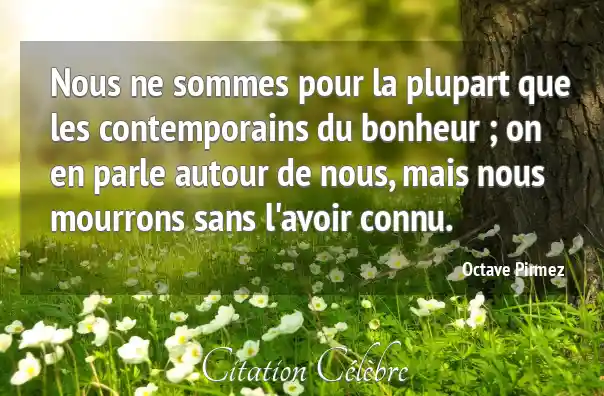 Nous ne sommes pour la plupart que les contemporains du bonheur ; on en parle autour de nous, mais nous mourrons sans l'avoir connu.