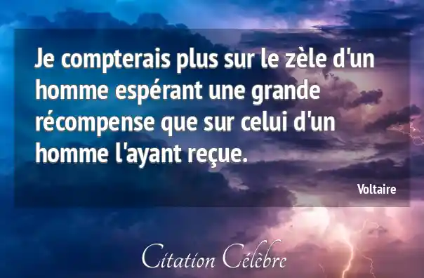 Je compterais plus sur le zèle d'un homme espérant une grande récompense que sur celui d'un homme l'ayant reçue.