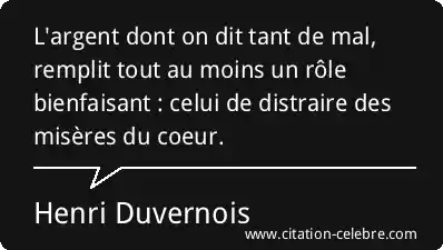 L'argent dont on dit tant de mal, remplit tout au moins un rôle bienfaisant : celui de distraire des misères du coeur.