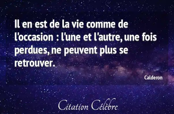 Il en est de la vie comme de l'occasion : l'une et l'autre, une fois perdues, ne peuvent plus se retrouver.