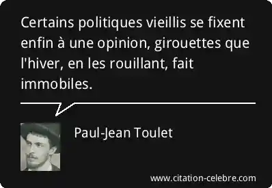 Certains politiques vieillis se fixent enfin à une opinion, girouettes que l'hiver, en les rouillant, fait immobiles.