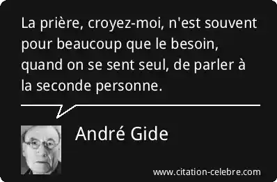 Citation André Gide moi : La prière, croyez-moi, n'est souvent pour beaucoup que le besoin,...