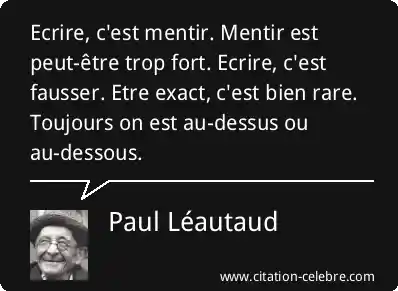 Ecrire, c'est mentir. Mentir est peut-être trop fort. Ecrire, c'est fausser. Etre exact, c'est bien rare. Toujours on est au-dessus ou au-dessous.