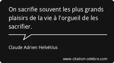On sacrifie souvent les plus grands plaisirs de la vie à l'orgueil de les sacrifier.