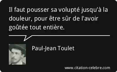 Il faut pousser sa volupté jusqu'à la douleur, pour être sûr de l'avoir goûtée tout entière.