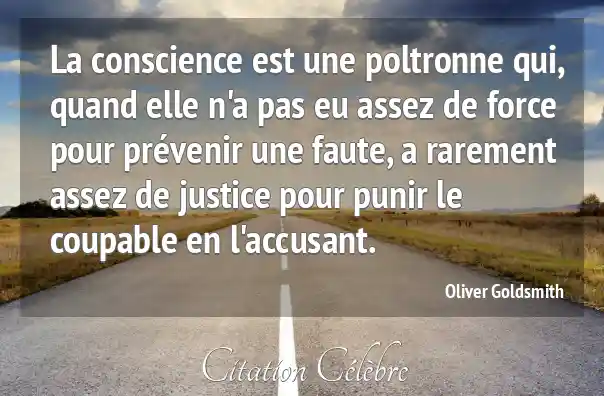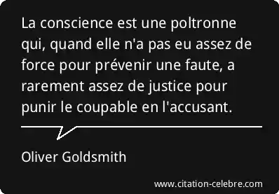 La conscience est une poltronne qui, quand elle n'a pas eu assez de force pour prévenir une faute, a rarement assez de justice pour punir le coupable en l'accusant.