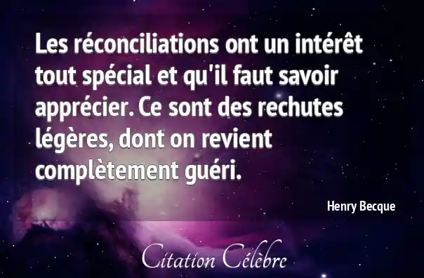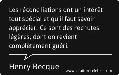 Les réconciliations ont un intérêt tout spécial et qu'il faut savoir apprécier. Ce sont des rechutes légères, dont on revient complètement guéri.
