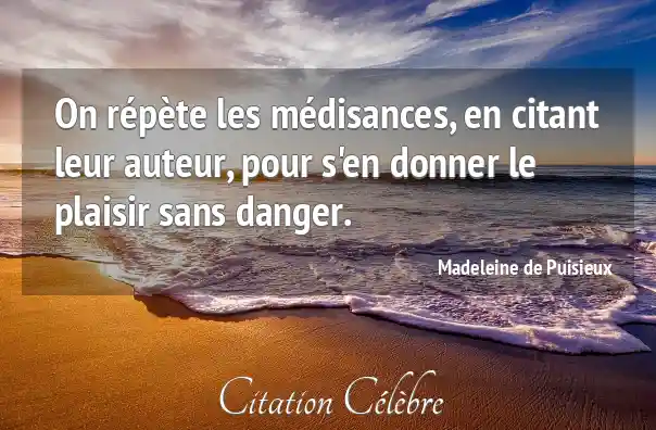 On répète les médisances, en citant leur auteur, pour s'en donner le plaisir sans danger.