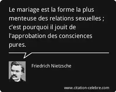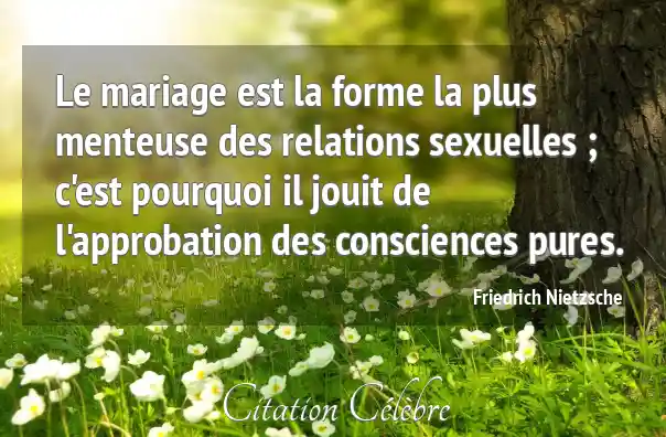 Le mariage est la forme la plus menteuse des relations sexuelles ; c'est pourquoi il jouit de l'approbation des consciences pures.