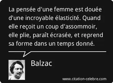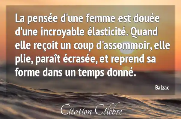 La pensée d'une femme est douée d'une incroyable élasticité. Quand elle reçoit un coup d'assommoir, elle plie, paraît écrasée, et reprend sa forme dans un temps donné.