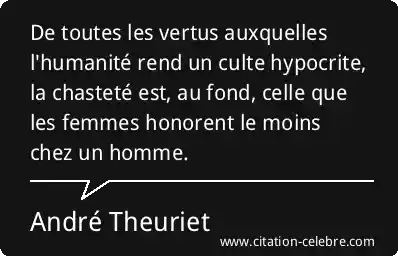 De toutes les vertus auxquelles l'humanité rend un culte hypocrite, la chasteté est, au fond, celle que les femmes honorent le moins chez un homme.