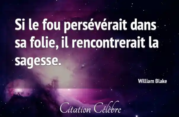 Si le fou persévérait dans sa folie, il rencontrerait la sagesse.