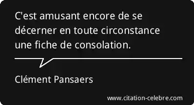 C'est amusant encore de se décerner en toute circonstance une fiche de consolation.